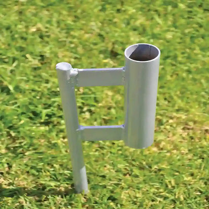 This pole base is specifically crafted to serve as a replacement for the Swooper Flag & Pole Kit with Ground Spike. It can be used as an alternative to the standard Tire Base when you prefer to install your Swooper Flag & Pole kit directly into the ground rather than under a vehicle's tire. Constructed from anodized aluminum, this base is resistant to rust. Simply use a mallet or hammer to drive the spike into the ground.