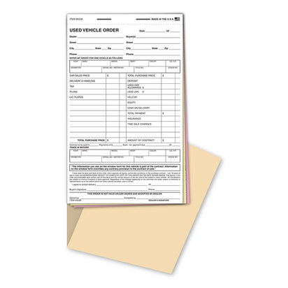 Used vehicle order book with 3-part carbonless snap-out forms – 50 per book