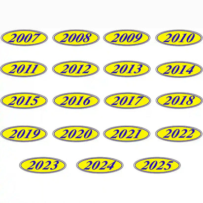 Enhance sales with Model Year Yellow and Blue Windshield Oval Stickers. Efficiently guide customers to their preferred model year on vehicles while preserving windshield visibility for test drives. Sold by the dozen