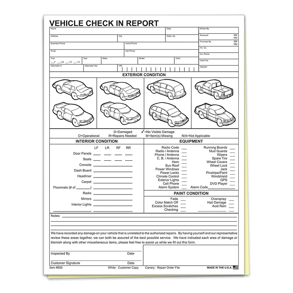 Protect your business from liability and ensure accurate vehicle condition tracking with our Vehicle Check-In Report. This form provides a clear and organized way to document any existing damage before servicing a vehicle, helping you avoid disputes and maintain transparency with customers.